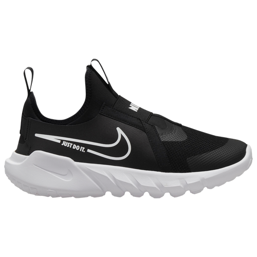 The Nike Flex Runner 2 occupies a specific niche within Nike's youth running portfolio—a no-fuss, lace-free silhouette engineered for young athletes who need reliable stability without complicated fastening systems. Unlike the brand's more technical distance runners, the Flex Runner 2 prioritizes accessibility and durability, making it a fixture in elementary and middle school PE programs. The design language leans utility over aesthetics, though the Black/Photo Blue/White colorway demonstrates that practicality needn't sacrifice visual clarity. This model sits firmly in the entry-to-mid tier of Nike's youth lineup, positioned between pure casual shoes and performance-oriented trainers.