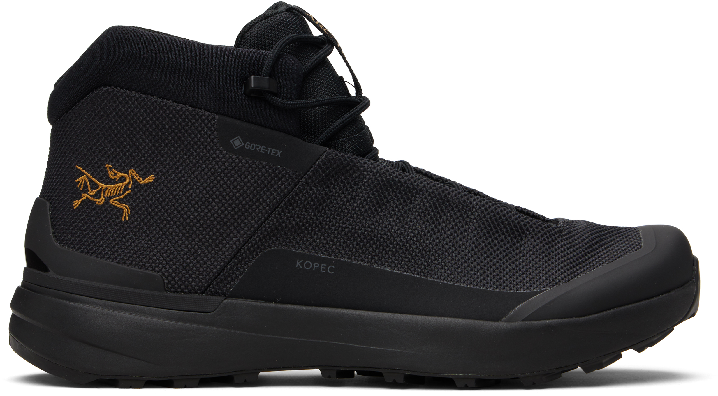 In black, the Kopec Mid GTX reads as a versatile neutral that transitions between trail, mountain base camp, and casual outdoor wear without visual friction. The colorway absorbs the utilitarian aesthetic rather than fighting it, allowing the boot's technical details and proportions to dominate the visual narrative. This is a boot that pairs naturally with tapered technical pants, hiking tights, or casual denim during off-season wear—it's at home on a scramble in the Cascades and equally suitable for a weekend cabin trip or forest walk where durability and weather resistance add practical value.